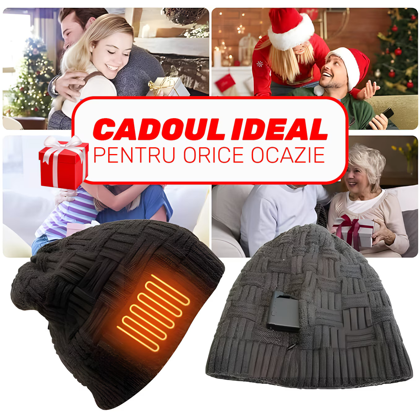 Caciula incalzita electric pentru barbati si femei, reincarcabila, ideala pentru sezonul rece, marime universala, ofera confort pentru activitati zilnice, acumulator inclus, Gri, Regal Bliss ®