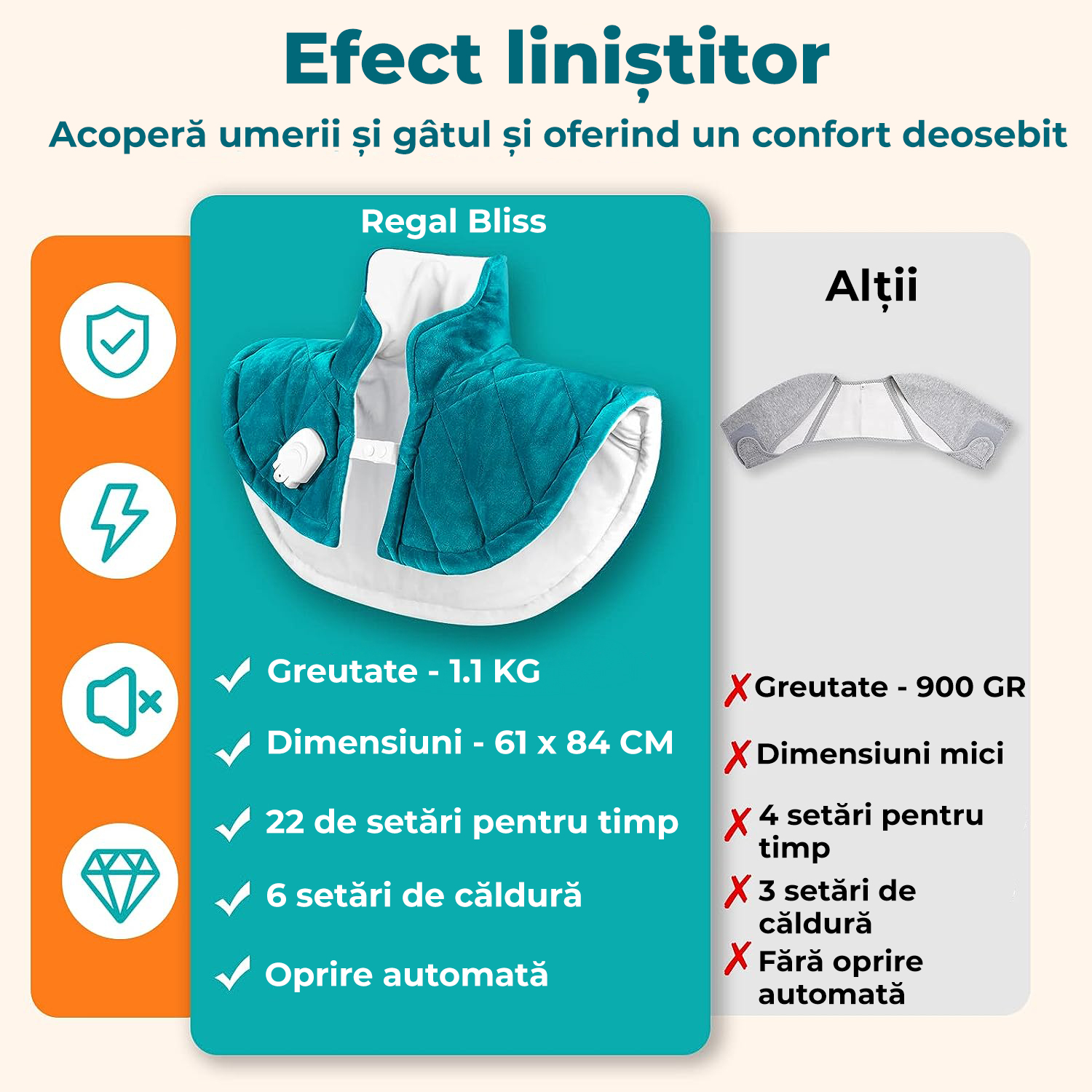 Incalzitor electric pentru gat, umeri, spate si abdomen, elimina tensiunile musculare, relaxeaza si reduce anxietatea, esential in zilele racoroase, cu 8 trepte de temperatura si control din telecomanda, ecran LCD, 85W, Albastru, Regal Bliss ®