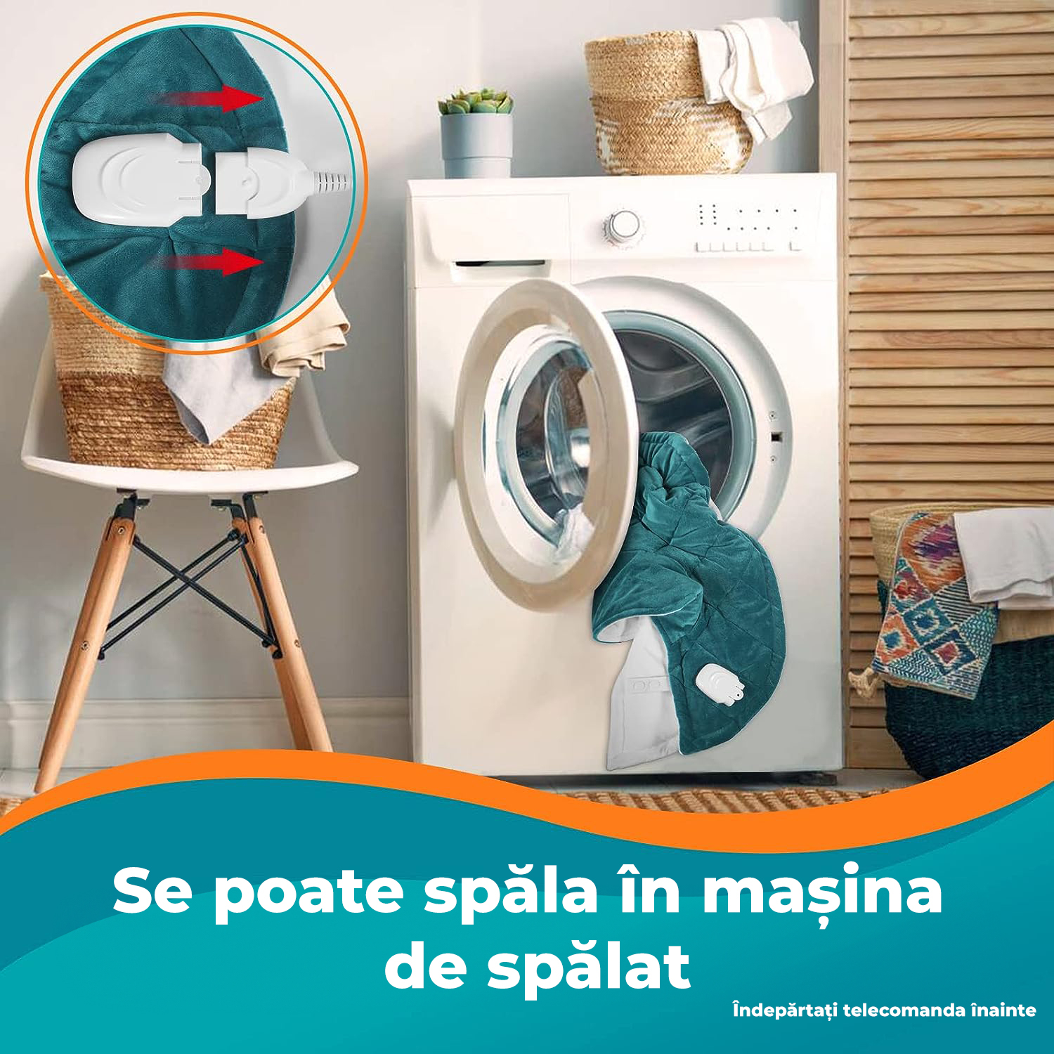 Dupa indepartarea telecomenzii, perna poate fi usor spalata la masina, asigurandu-se ca ramane curata si proaspata pentru fiecare utilizare.