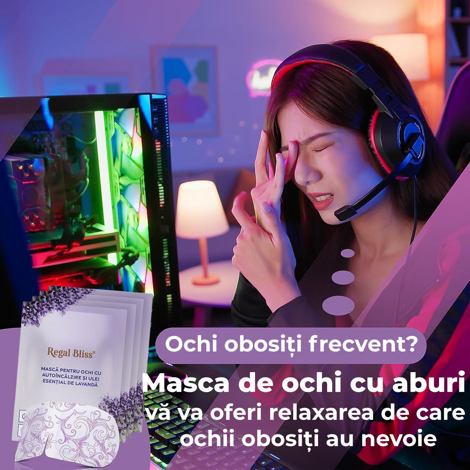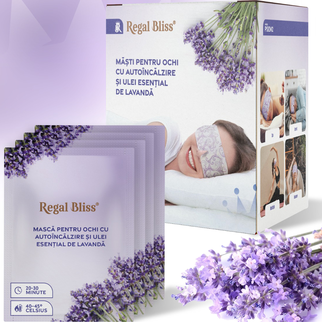 Masti pentru ochi cu autoincalzire si ulei esential de Lavanda, remediu natural pentru indepartarea cearcanelor, relaxare, ingrijire si tratament in confortul casei tale, reducere stres, eliberare tensiuni, somn odihnitor, set de 16buc., Regal Bliss ®