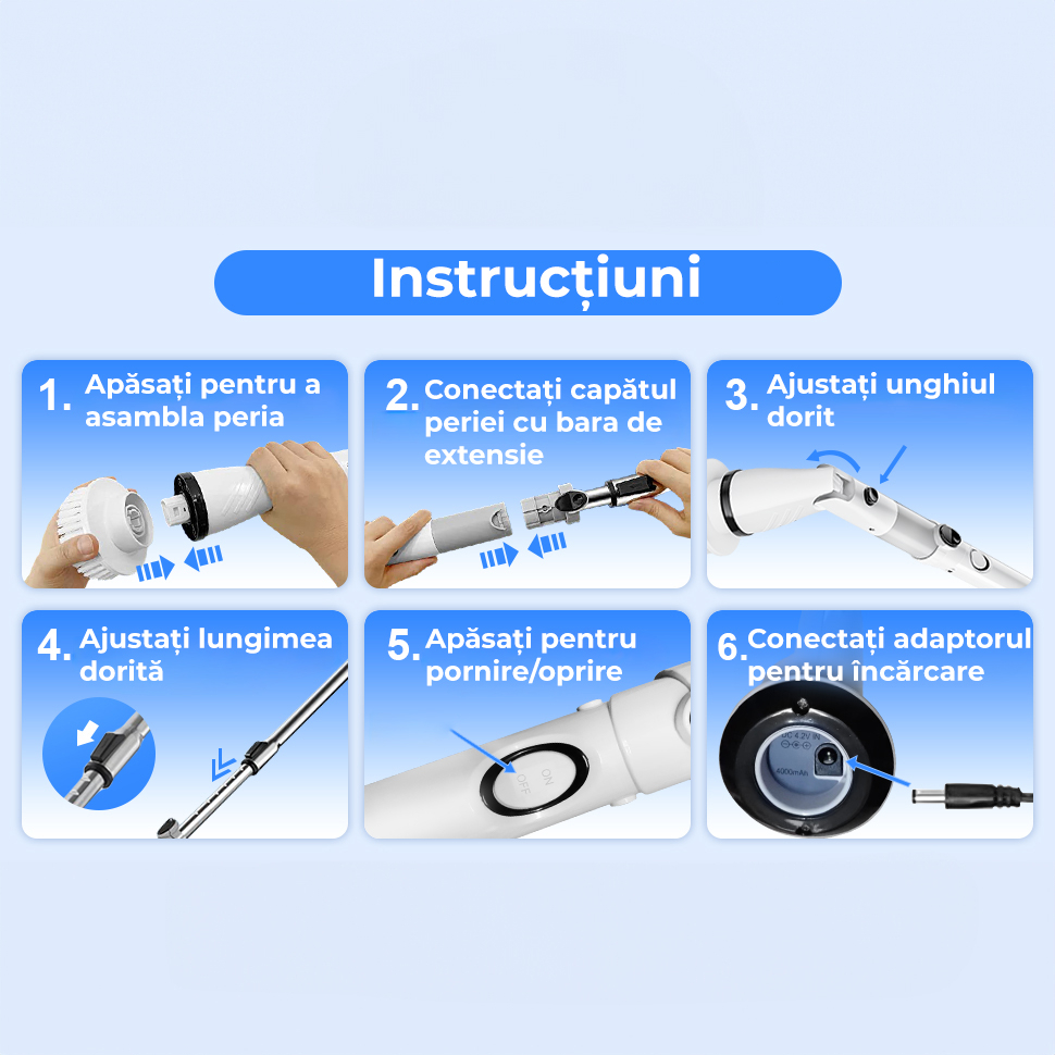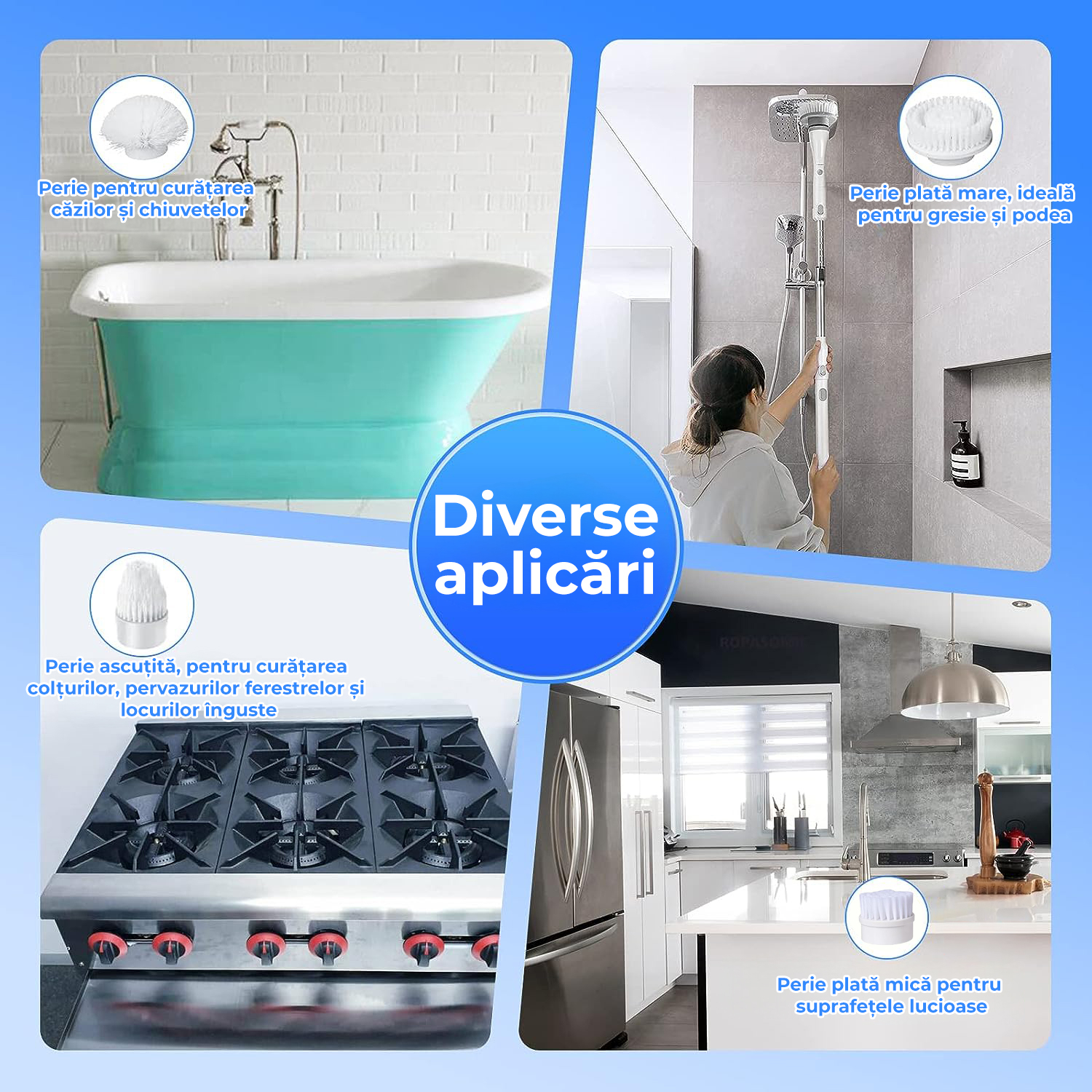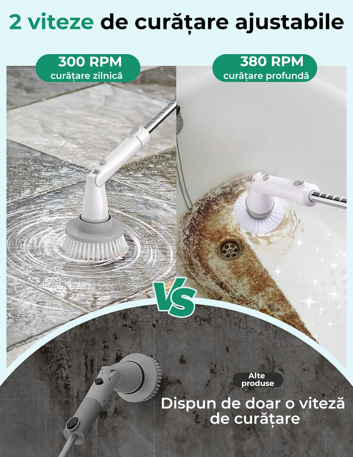 Adauga o nota de eficienta si usurinta in rutina ta de curatare cu aparatul nostru inovator. Aceasta perie electrica ofera multiple functii pentru a face curatarea mai rapida si mai eficienta, eliminand efortul obisnuit. Indiferent daca este vorba de baie, gresie, caramizi sau orice alta suprafata, vei obtine rezultate stralucitoare cu fiecare utilizare.