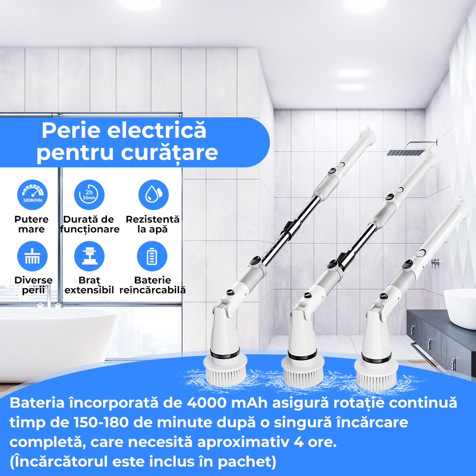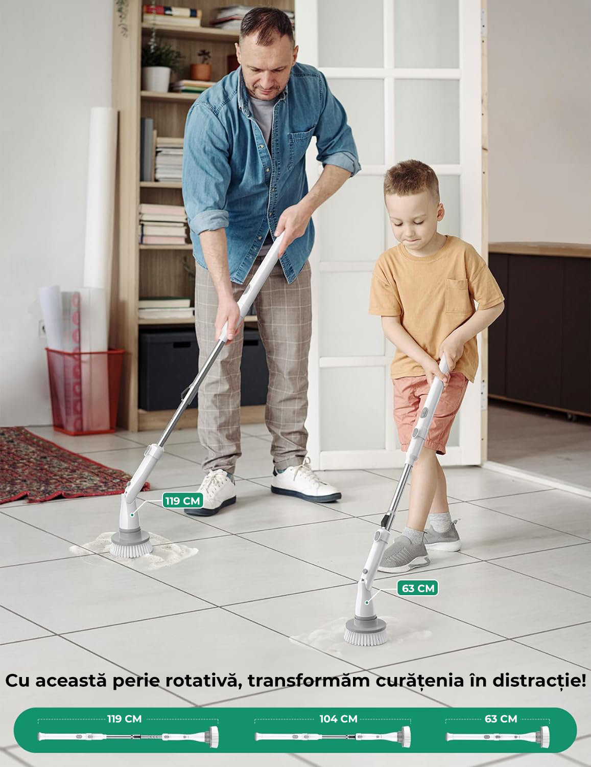 Peria electrică rotativă a fost o revelație în eficiența curățeniei mele! Cu un design ingenios și funcționalitate avansată, această perie redefinește experiența de curățare fără efort.